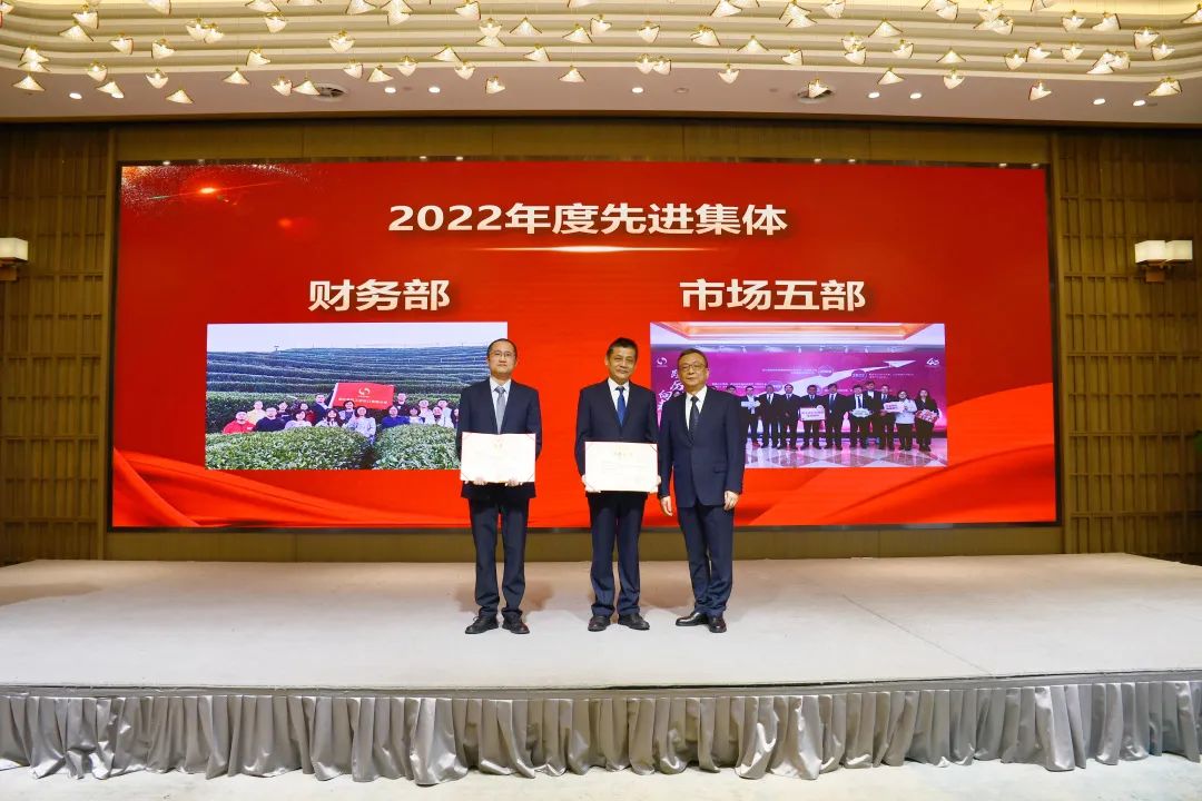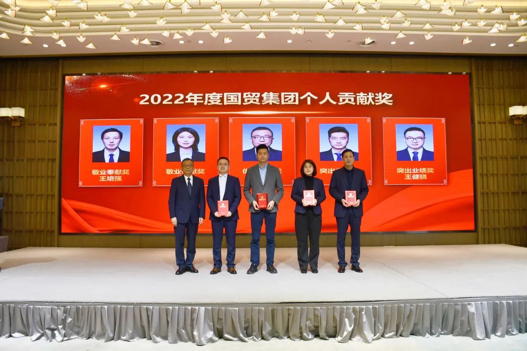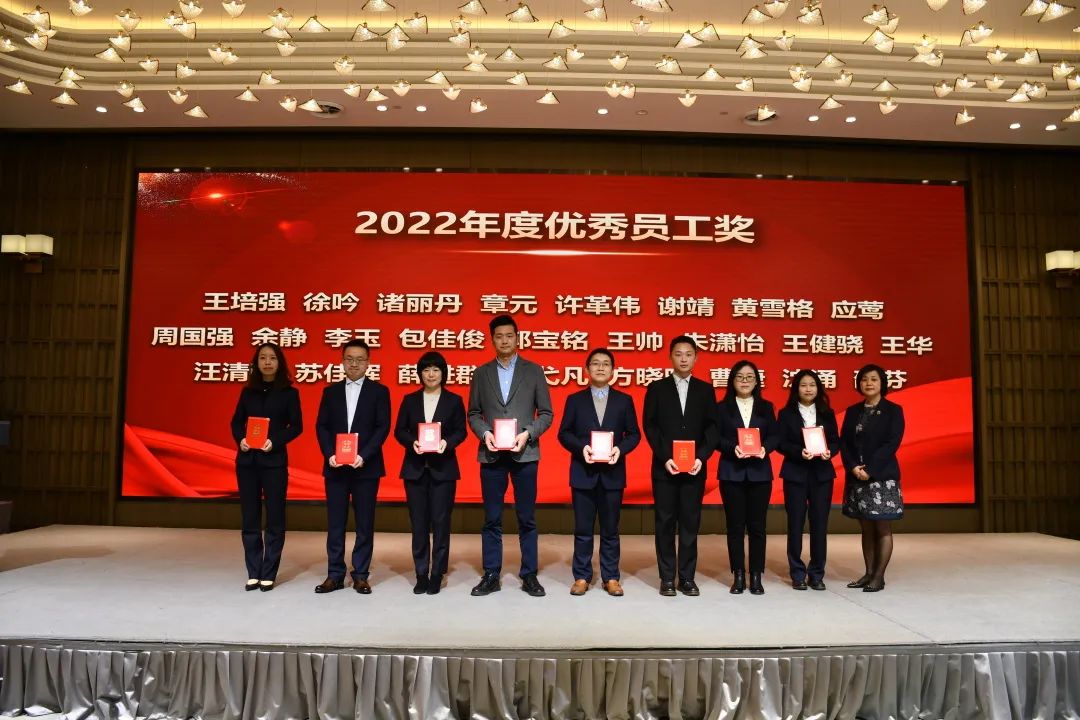 黨委副書記、總經(jīng)理王芬宣讀《中共浙江省國際貿(mào)易集團有限公司委員會關(guān)于表彰省國貿(mào)集團2022年度先進集體和個人貢獻獎的決定》和《浙江省化工進出口有限公司關(guān)于表彰2022年度先進集體及個人的決定》文件,隨后對獲獎人員進行了表彰。